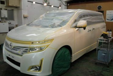 コーティング施工前に塗装面に付いた洗車傷や水垢等をポリッシング作業で除去しました。