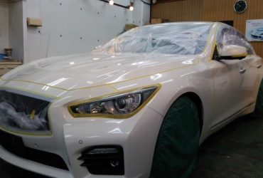 コーティング施工前に塗装面に付いた洗車傷や水垢等をポリッシング作業で除去しました。