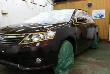 コーティング施工前にボディに付いた洗車傷や水垢等をポリッシング作業で除去しました。